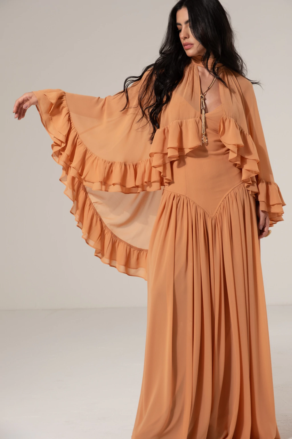 Pelerine Fluído Jardim Do Tempo destaca-se pelo seu design elegante e versátil. Com detalhe de camadas na barra, adiciona um toque de sofisticação e movimento. O fechamento no pescoço por amarração garante um ajuste personalizado e charme extra. Ideal para ocasiões especiais.